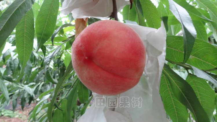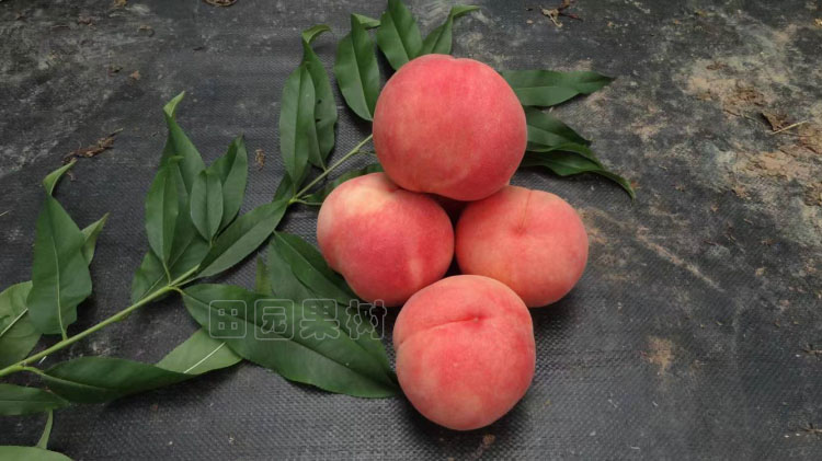 由四川省農(nóng)業(yè)科學(xué)院園藝研究所引種,以中熟水蜜桃“朝暉”為母本,中熟油桃“瑞光18號(hào)”為父本雜交獲得,該品種樹體生長(zhǎng)健壯,生長(zhǎng)勢(shì)中庸,萌芽率和成枝力較強(qiáng)。以中短果枝結(jié)果為主,花粉量大,自花結(jié)實(shí)力強(qiáng),全樹桃果碩果累累,需大量疏果,產(chǎn)量極高。果實(shí)近圓形,果頂圓平或稍突,平均單果重226克-400克,大果單果可達(dá)重475克。果皮底色乳黃色,果面80%以上著紅色,外觀美。果面茸毛中等,果皮厚度中等,難剝離,成熟較一致,梗洼中等。縫合線淺,兩半部較對(duì)稱,果肉白色,硬溶質(zhì),肉質(zhì)細(xì),纖維中等,汁液中多,風(fēng)味甜香,近核處紅色素少,不裂果,不裂核,粘核。果實(shí)留樹時(shí)間長(zhǎng)達(dá)10~15天,風(fēng)味甜香,采收后放置4天左右肉質(zhì)變軟風(fēng)味更佳,可溶性固形物含量15%-18%。7月初成熟,果實(shí)生育期125天左右。