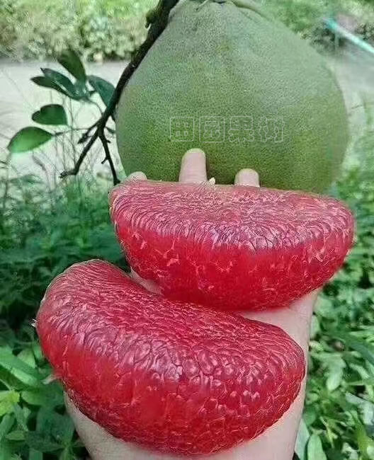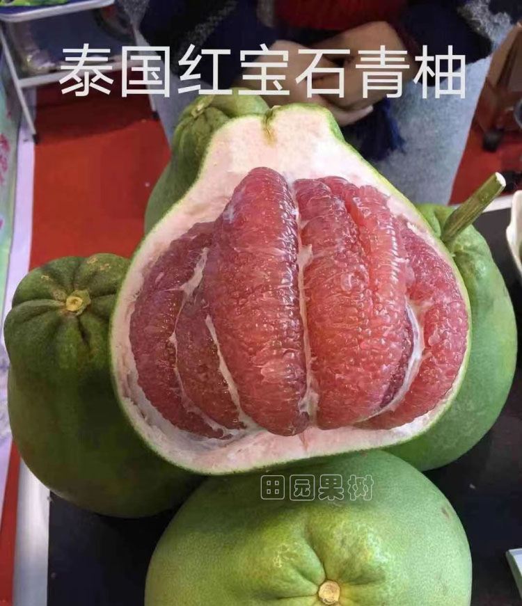 泰國紅寶石青抽完熟時果皮呈青綠色或黃綠色,果蒂向內(nèi)凹陷并帶有褶皺,海綿層粉紅色,果肉紅色、酷似紅寶石、鮮嫩飽滿多汁,入口化渣,有香氣。枝葉有明顯絨毛,果實(shí)無核或少核,可食率85%,糖度14-16度,基本無酸味,單果重1250-2000克左右,表皮較粗糙,皮略薄,營養(yǎng)價值高,富含多種營養(yǎng)元素:維生素C、鉀元素、葉酸,果肉中還含有胰島素成分和果膠等。因其極為珍貴,被(泰國國家珍貴經(jīng)濟(jì)作物)保護(hù)物種,我國于2017年引進(jìn)該品種,目前在海南、廣西、云南、四川等地開始批量種植。